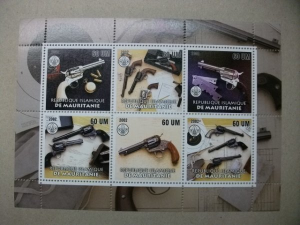 - モーリタニア切手『ピストル』6枚シートA 未使用