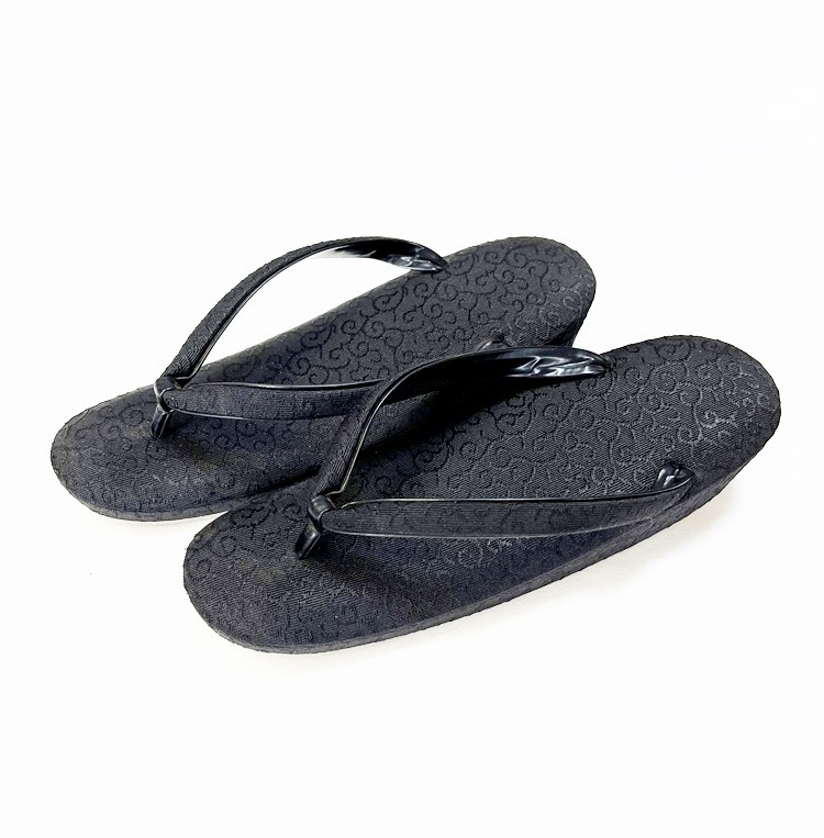- 花とら●リサイクル和装小物 草履 喪用 黒 伊と忠 23.5cm 230410-02