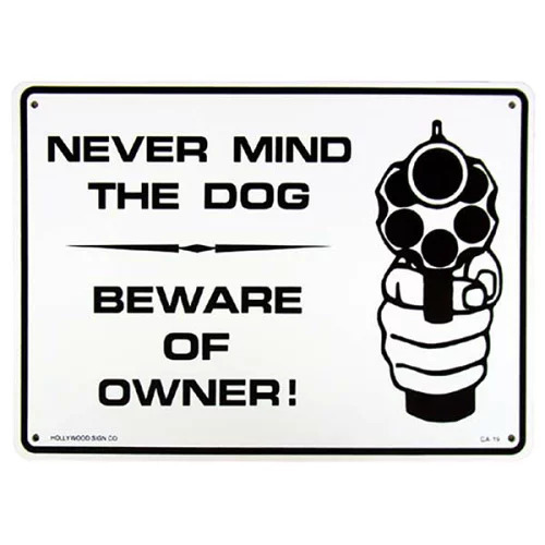 > プラスチックサインボード『NEVER MIND THE DOG』犬より主人に注意 [CA-19] プラ看板 アメリカン雑貨 インテリア雑貨 ショップ 店舗