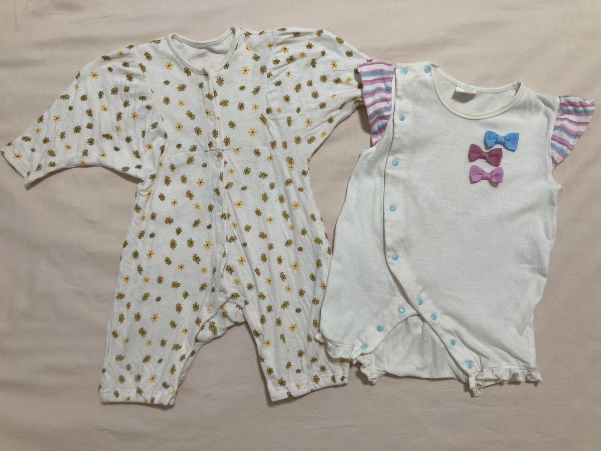 - ロンパース 80cm 2枚セット BREEZE SKAPE シ・シュ・ノン ベビー服 新生児 カバーオール 女の子 春夏 赤ちゃん 花柄 リボン まとめ売り