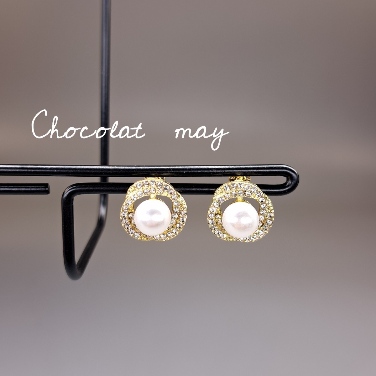 - ピアス ラインストーン ゴールド パールビーズ ラウンド アクセサリー ファッション 小物 ゴージャス パーティー