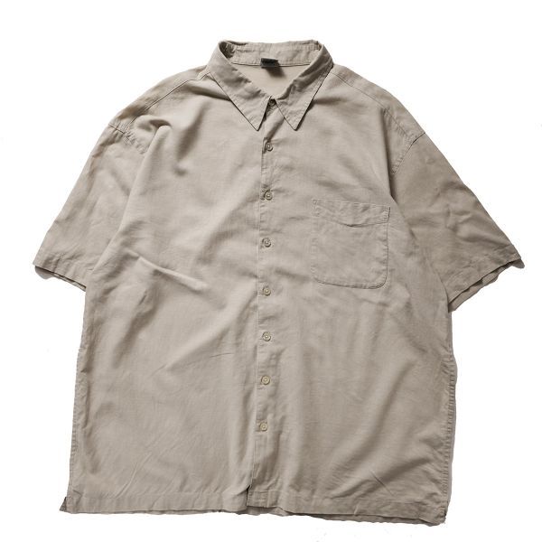 > 2001年 オールドネイビー リネンコットン ボックスシャツ 半袖 (XL) ベージュ系 無地 00's 00年代 旧タグ オールド GAP ギャップ OLD NAVY