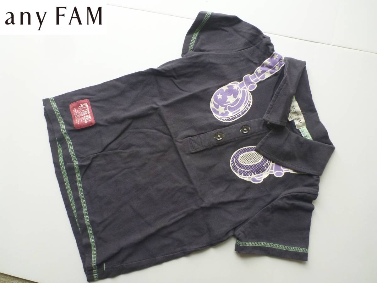 > 超美品 any FAM(エニィファム) ★グレー系 ヘッドフォンプリント 半袖 シャツ 100