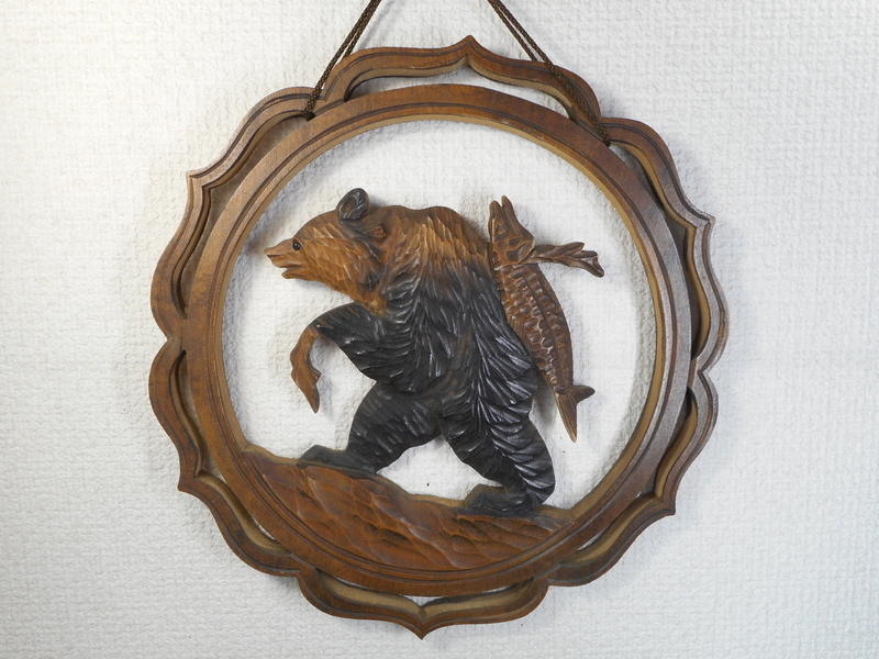 - 木彫り 熊 レリーフ ガラス目 ビンテージ クマ