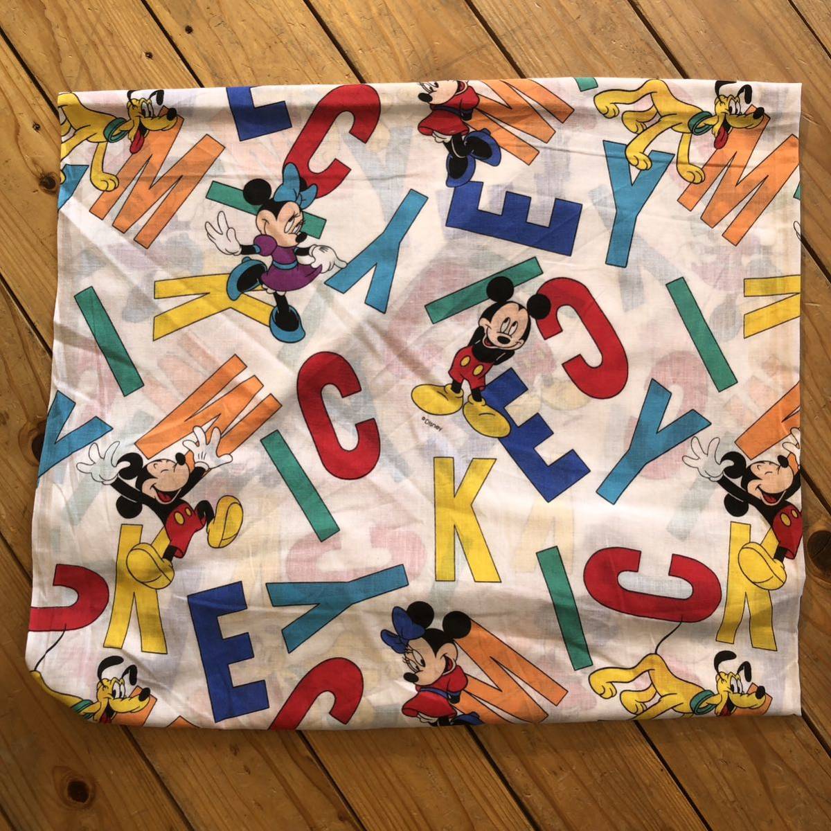 - USA ヴィンテージ ミッキーマウス キッズ ベッドシーツ リメイク生地 ボックスシーツ ミニーマウス ディズニー 総柄 アルファベット B1349