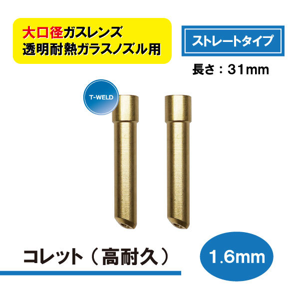 - TIG 溶接 WP-17/18/26 大口径ガスレンズ 「ストレートタイプ」 透明耐熱ガラスノズル用 コレット 1.6mm 2本