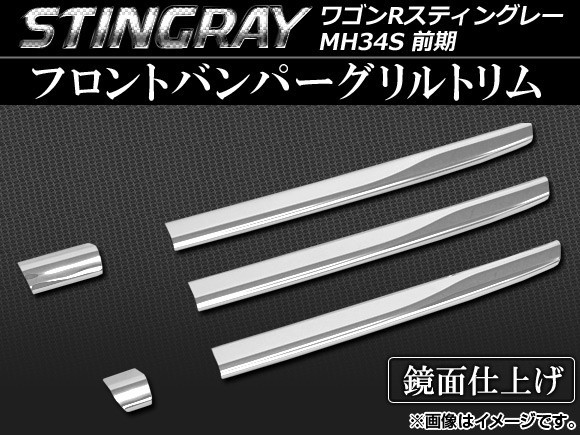 > フロントバンパーグリルトリム スズキ ワゴンRスティングレー MH34S 前期 2012年09月~2014年07月 ステンレス AP-EX350 入数:1セット(5個)