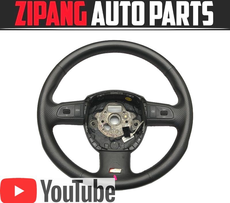 - AU069 4F A6 アバント 3.2FSI クワトロ Sライン 本革 ステアリング ハンドル ◆黒革/赤×白ステッチ【動画有り】○
