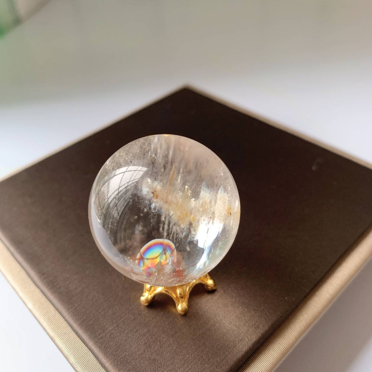 - ◇ガーデンクォーツ(庭園水晶)◇水晶玉◇虹入り◇丸玉◇パワーストーン◇天然石◇置き台付き◇置物◇プレゼントにも 019J5199