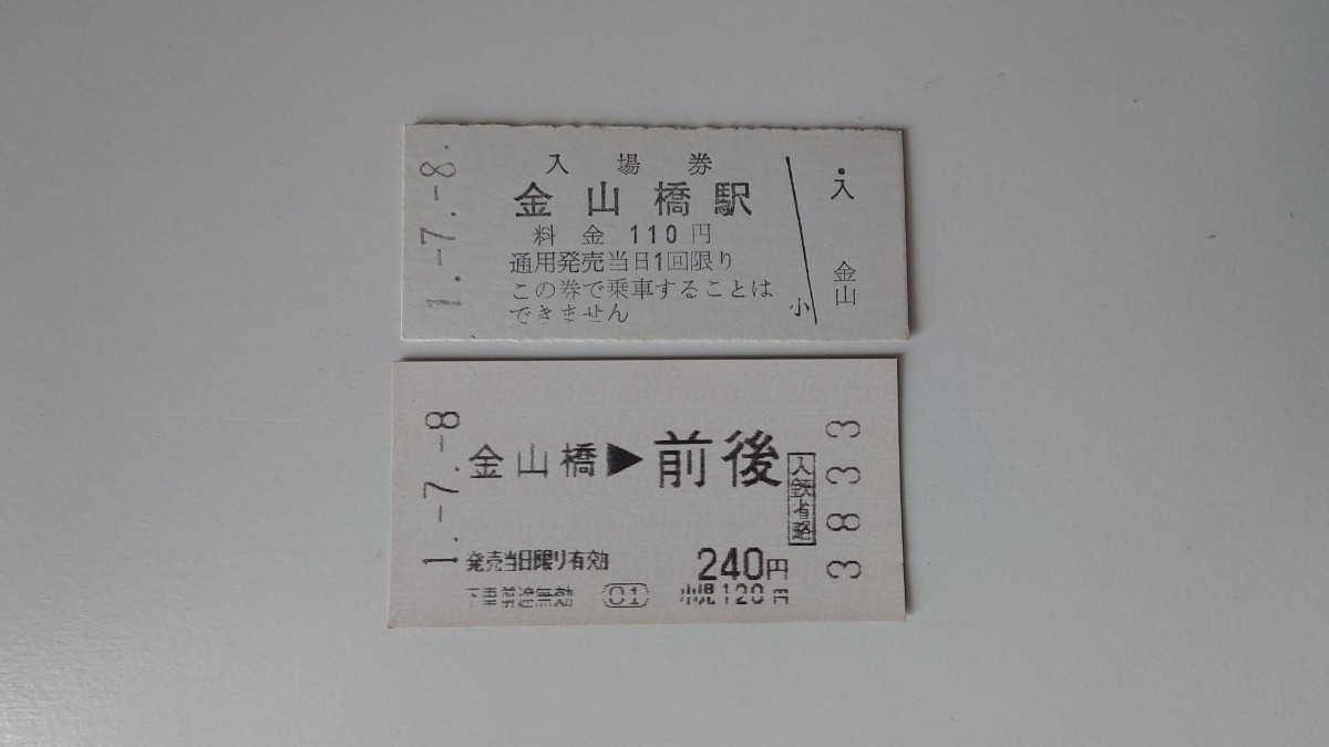 - ▽名鉄・最終日▽金山橋駅発行 入場券・乗車券2種一括