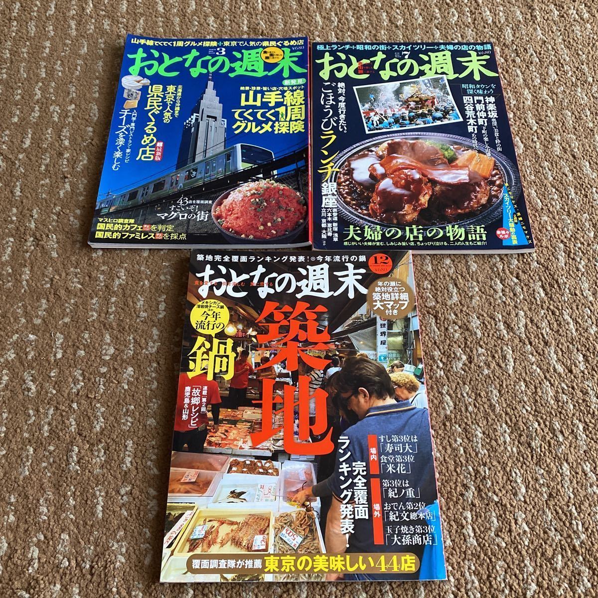 - おとなの週末2012年 3月 7月 12月号 No113 117 122 3冊セット 山手線てくてく一周 ごほうびランチ銀座 今年流行の鍋 平成24年 グルメ