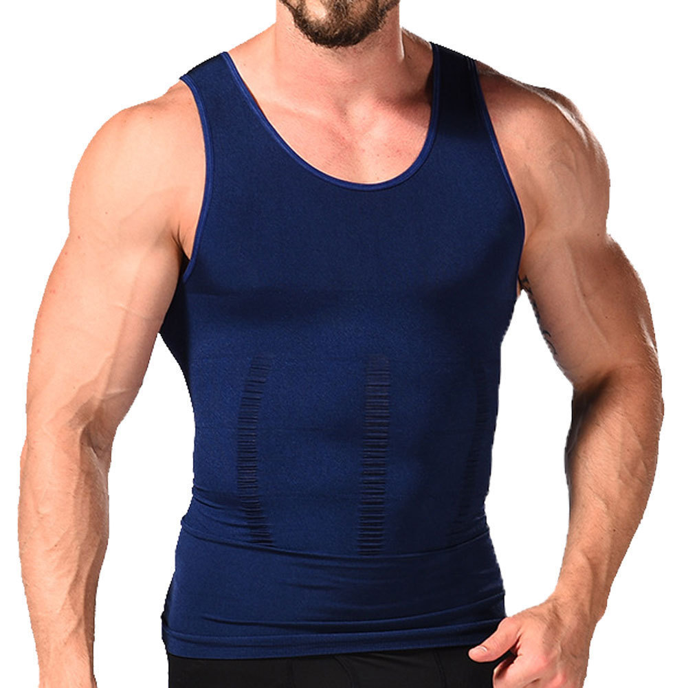> XXL size メンズ 極強力 加圧 シャツ 筋肉 トレーニング ウェア タンクトップ インナー ダイエット 脂肪燃焼 紺
