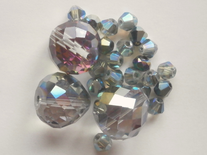 - ガラスビーズ★多面カット★モスグリーン系★D