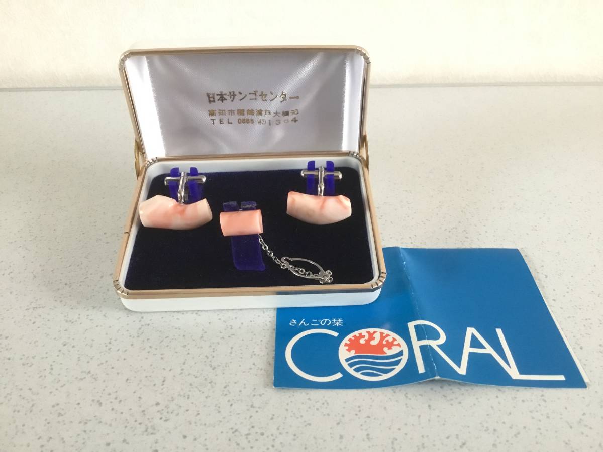 - 珊瑚 サンゴ ネクタイピン カフス セット
