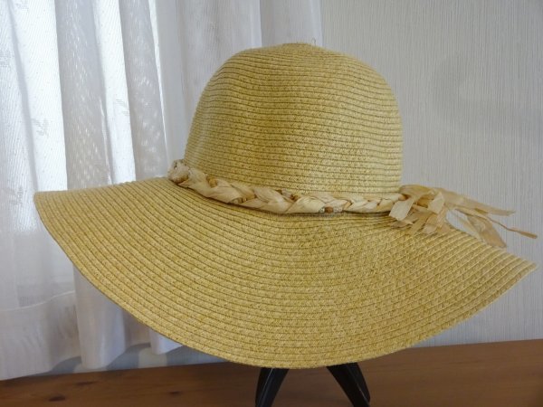- {ストローハット }レディース・婦人用 つば広ハット スタイル帽子 サイズ57cm〜59cm キャップ 帽子