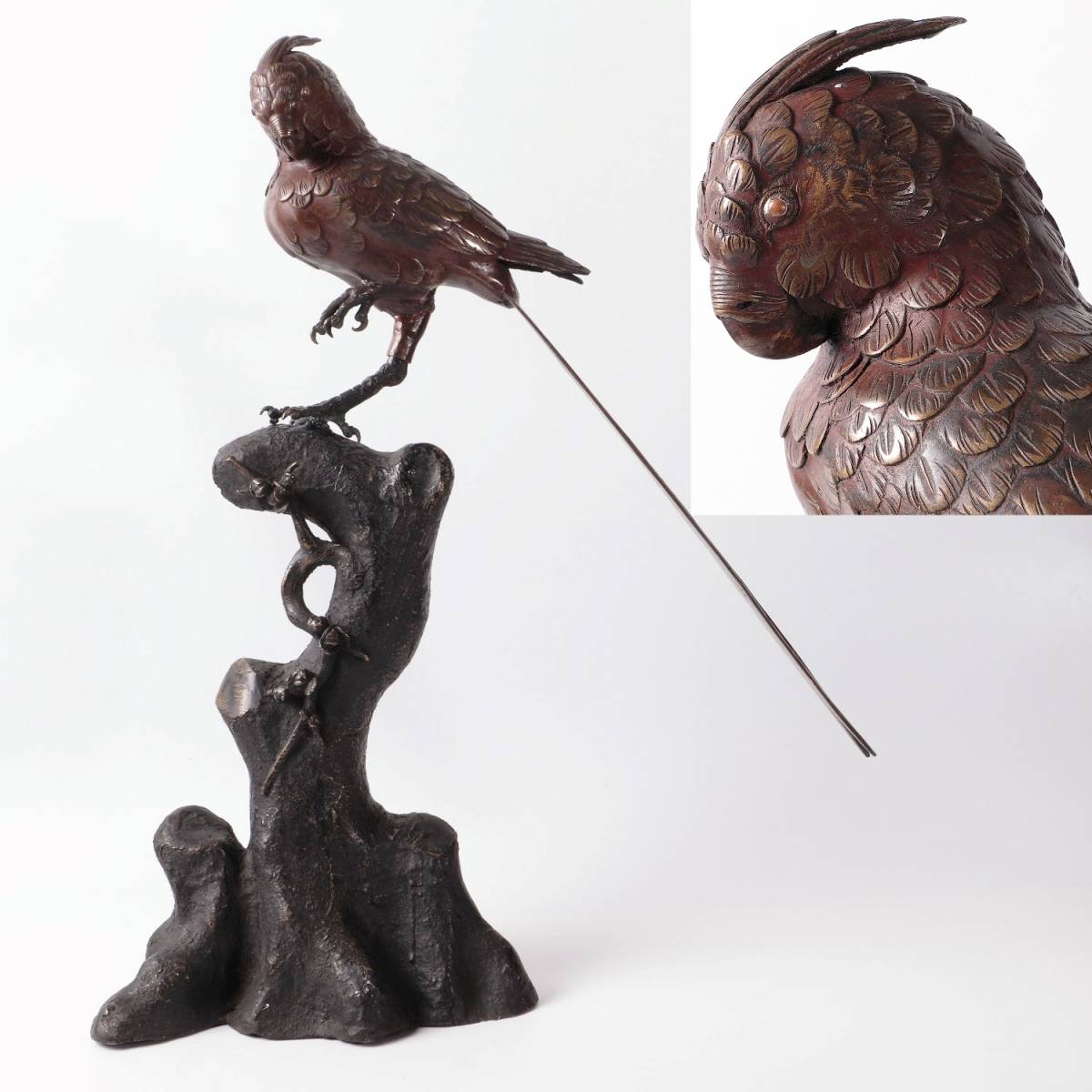 - ◆◇明治期? 花鳥ブロンズ像 52cm 4.2kg■砲金 アンティーク 骨董 置物◇◆