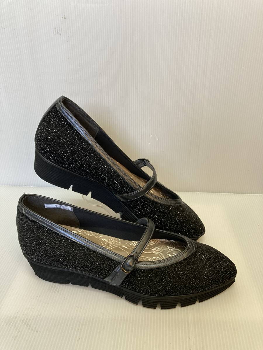 - ★お買い得!レディース革カジュアルパンプス Enzo Moiteni 73-7011 ブラック 24.0㎝ 幅EEE 日本製 キラキラゴージャス感あり