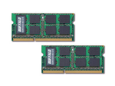 - 【バッファロー製】4GB DDR3-10600 2枚組(合計8GB) ノートPC用メモリ SO-DIMM 1.5v 型番:D3N1333-4GX2/E