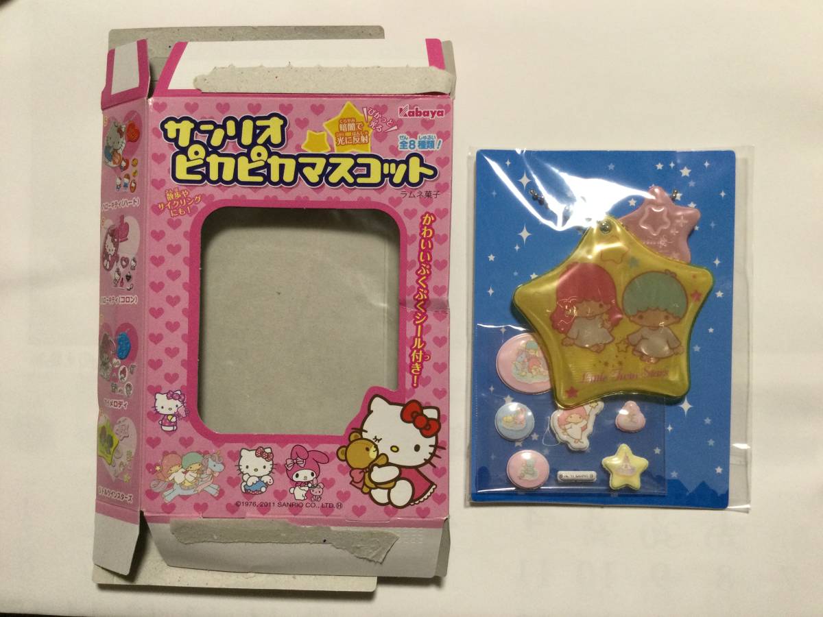 - サンリオピカピカマスコット リトルツインスターズ キキララ 暗闇で光に反射 2011年 カバヤ 食玩 ぷくぷくシール付き