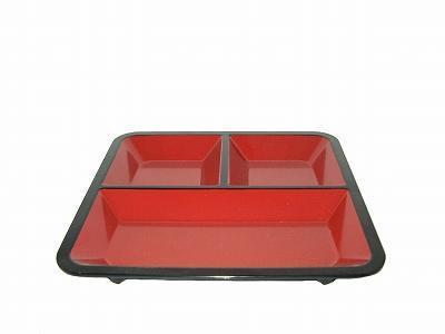 - 福井クラフト 漆器 8.5寸松花堂 三つ仕切 朱天黒 大皿 550-088-60
