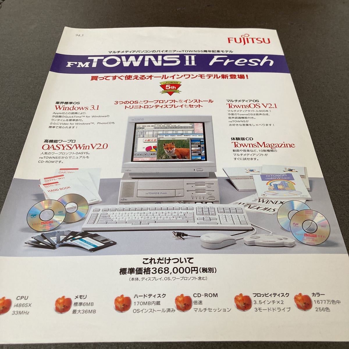 - 貴重:当時物⑭:約30年前のカタログ FM-TOWNS 送料無料 タウンズ 富士通 状態は年数の割にはキレイです