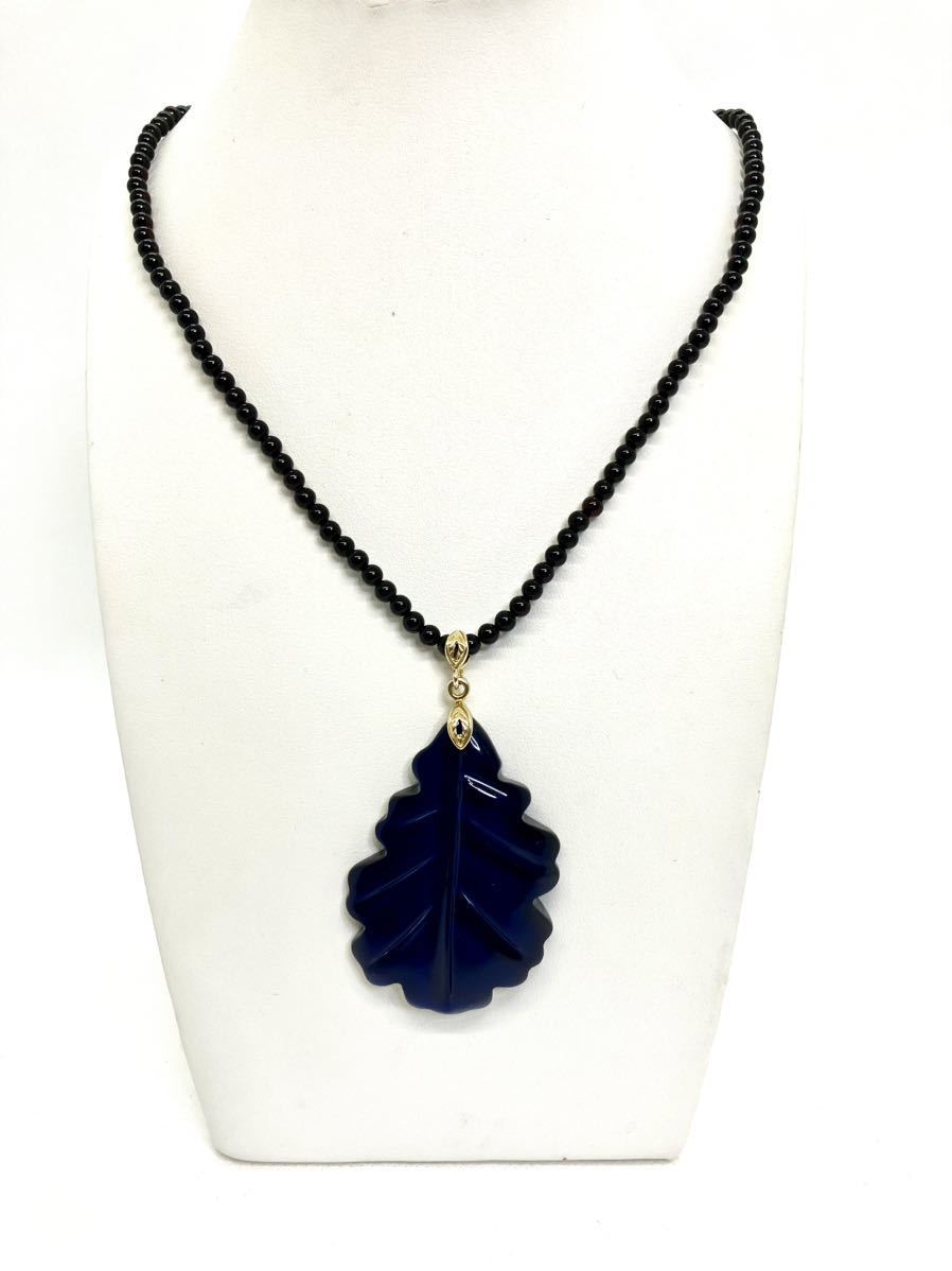 - 【新品】リトアニア産ブルー琥珀リーフデザインネックレス*ブルーアンバー*シンプル*一点もの*こはく*カービング*レッドアンバー