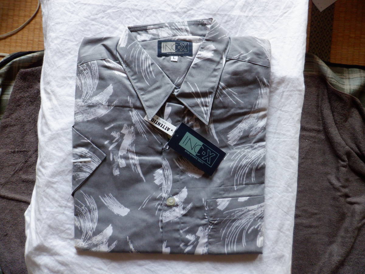 - INC-X 半袖シャツ グレーに図柄 Lサイズ 未使用品 タグ付き