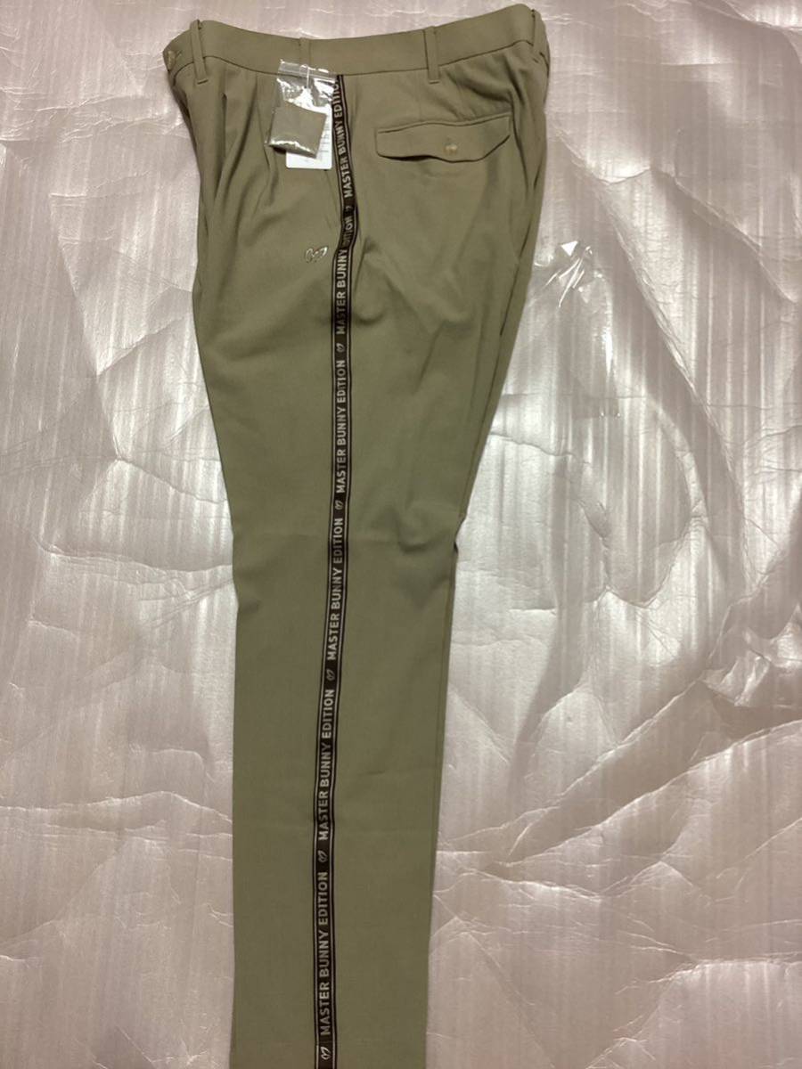 > 新品 正規品 パーリーゲイツ マスターバニー ストレッチ ウールブレンドサイドロゴ刺繍ツータック パンツ サイズ 5 ベージュ