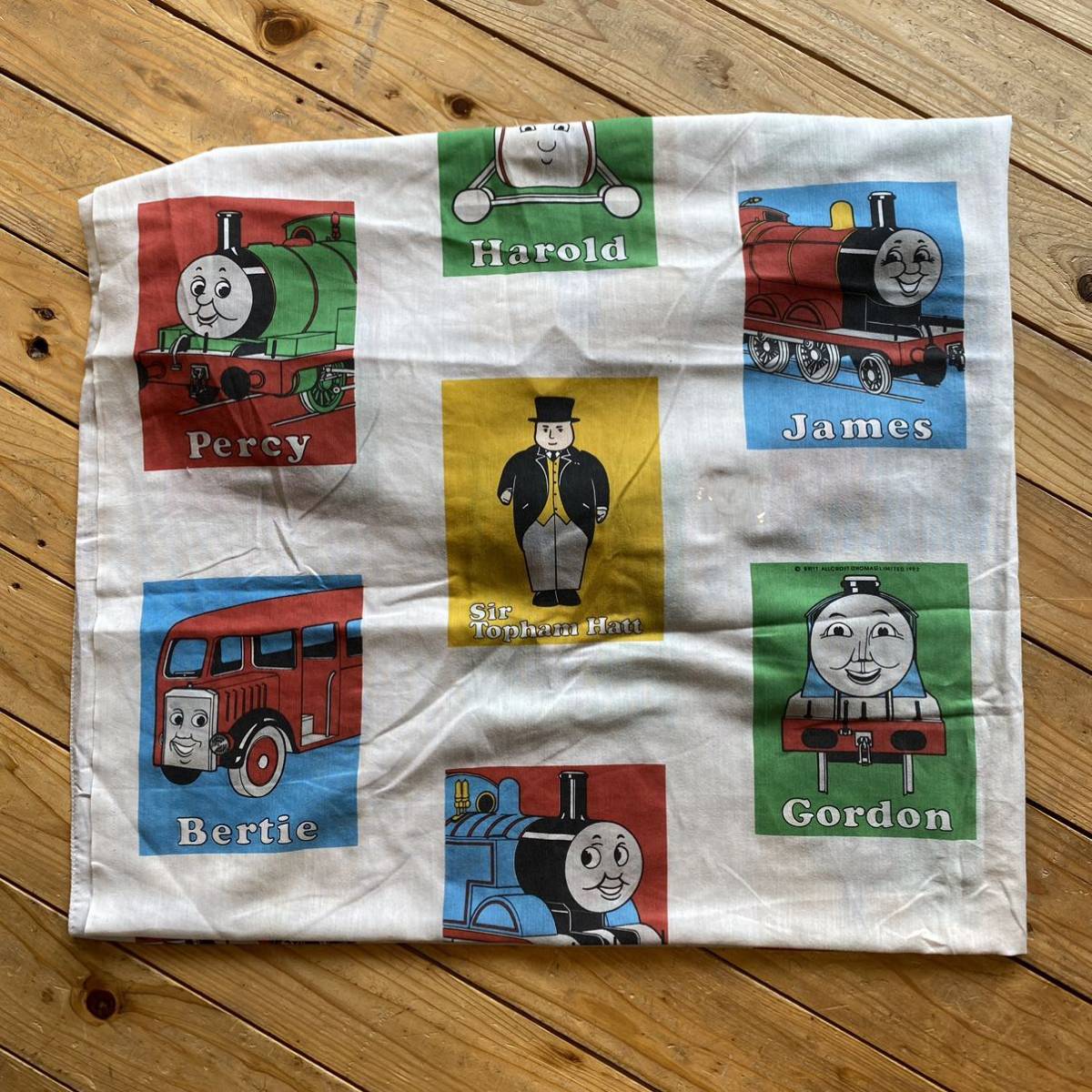 > USAヴィンテージ ベッドシーツ きかんしゃトーマス リメイク生地 素材 ボックスシーツ キャラクター カラフル アメリカ仕入 総柄 B1622