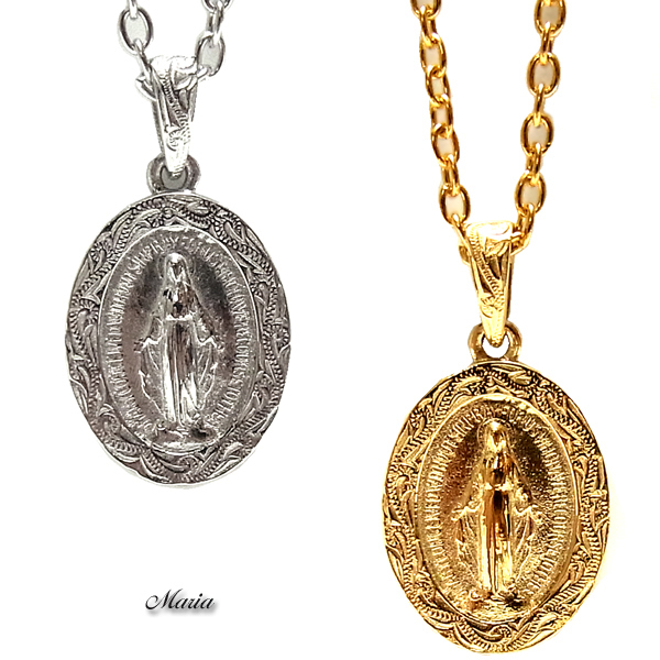 - ★人気★ハワイアンジュエリー★金属アレルギー&温泉&海水浴ご使用OK★ステンレスネックレス★K14YGコーティング&シルバー&聖母マリア様