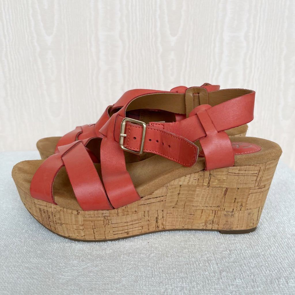 > Clarks レディース ウェッジソール サンダル 7 1/2 レザー ベージュ コーラルピンク