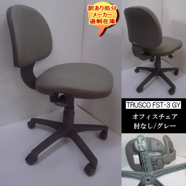 > 送料無料 訳あり処分 過剰在庫 TRUSCO 肘なし オフィスチェア 汚れに強い合皮 FST-3 グレー GY 最安値