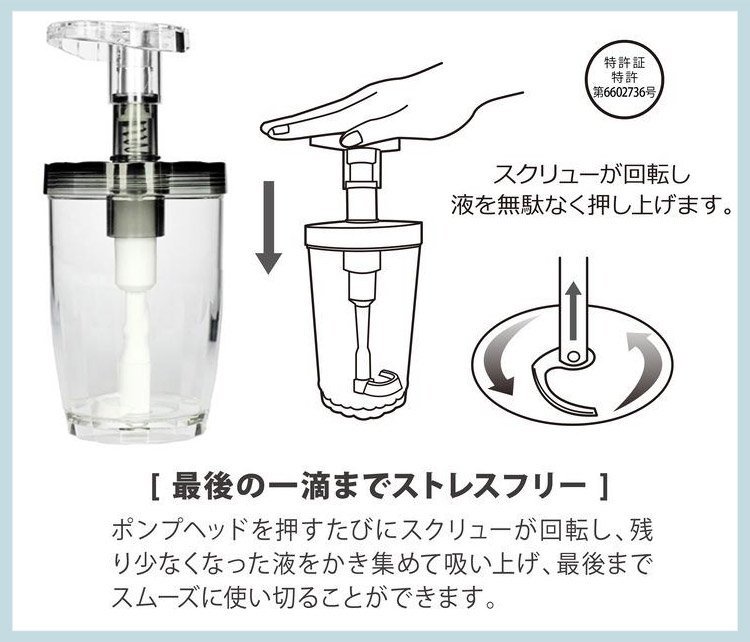 - 【日本製 】フィオーレ520★Dayシリーズ ソープディスペンサー 520ml/ブラック★最後までスムーズに使える!特許出願中の先端スクリュー