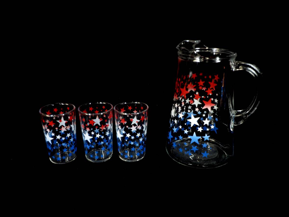 > アメリカンビンテージ パーレットコリンズ ピッチャーとグラス3個セット スター柄 1940〜60年代 ピッチャー 直径12cm 口径9cm TET506