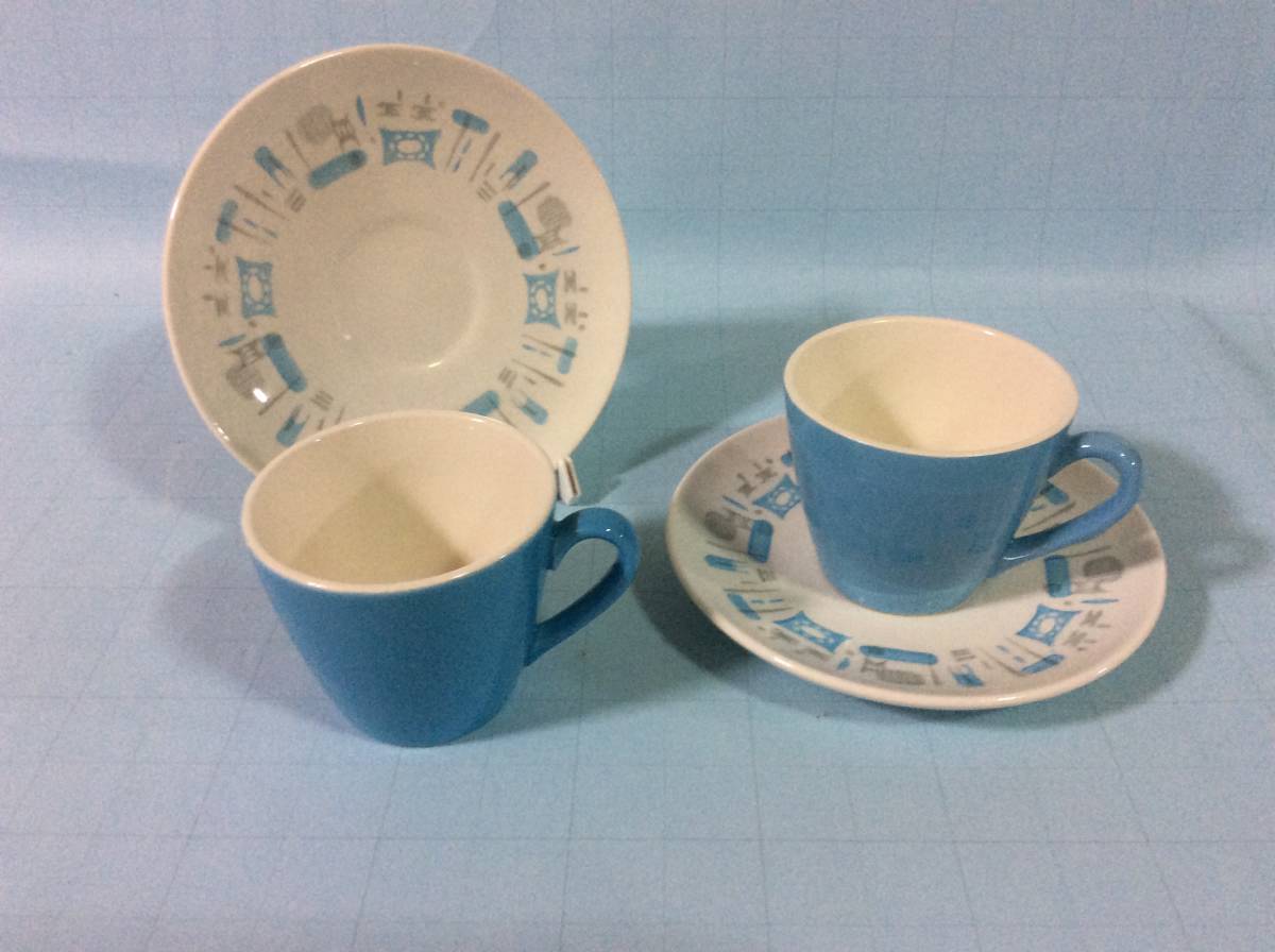 > 【Mid-Chinaware/Royal China/BLUE HEAVEN】ローヤルチャイナ/ブルーヘブン/カップ&ソーサー2客/EX+/ミッドセンチュリー/アトミックエイジ