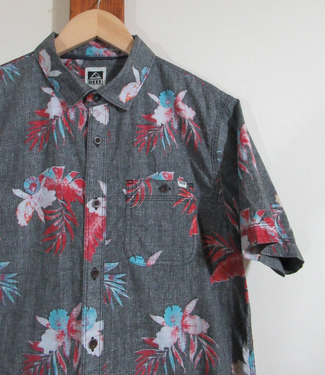 - REEF/リーフ▲シャツ 半袖 アロハシャツ リバースプリント コットン×ポリエステル SURF サーフ