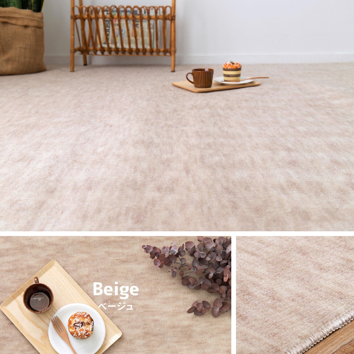 - 敷き詰めカーペット タフト 抗菌 日本製 「ファーレ」 ベージュ 江戸間4.5帖(抗菌加工 パイル地 ホットカーペット対応 インテリア)