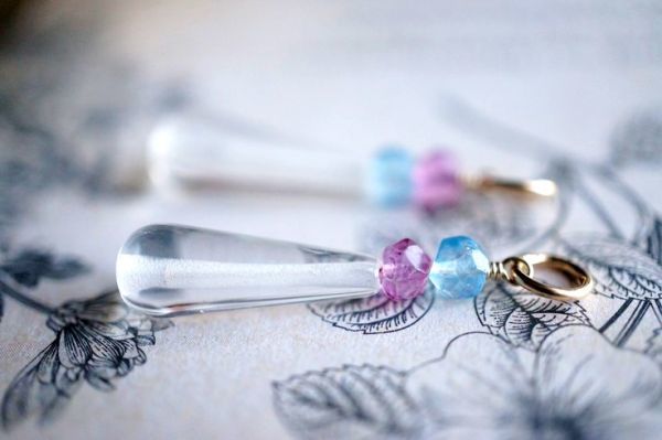> 【フープ用チャーム】K14GF690 クリスタルクオーツ(水晶)チャーム 1ペア /フープピアス・フープイヤリング・ピアリング ピアスチャーム