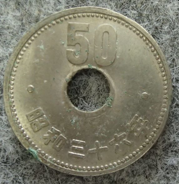 - !!稀少★旧貨幣★50円ニッケル貨(穴アキ)★昭和36年菊★並品!!