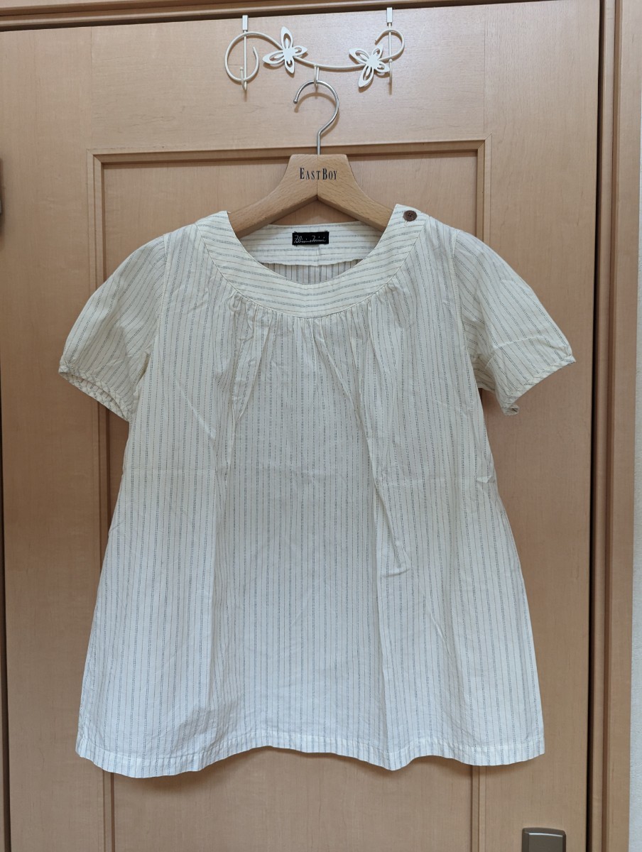 - サイズM☆レディース☆フェリシモ☆生成りストライプスモックシャツ☆肩ボタン☆送料込み