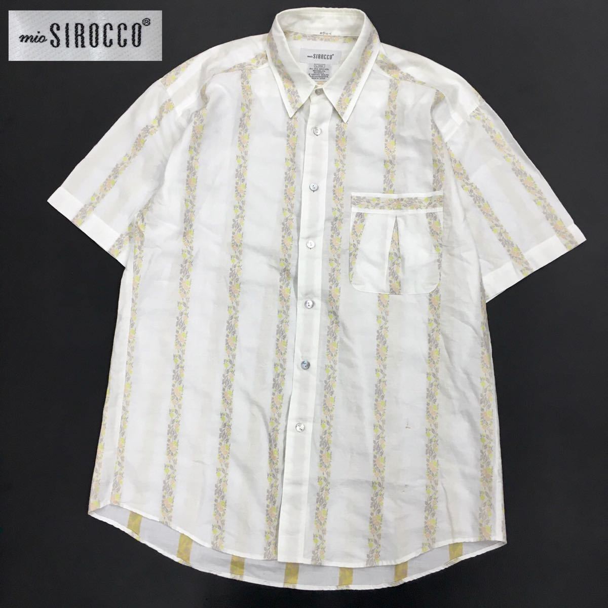 - mio SIROCCO ミオ シロッコ 半袖シャツ ストライプ 花柄 貝ボタン メンズ サイズL 日本製