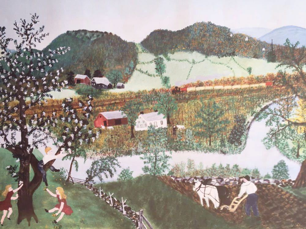 > 【グランマ・モーゼス】「フージック川、夏」印刷物 絵柄24種展開 絵 額 グランマモーゼス 木製額装44.1×33.8cm 絵柄違い有