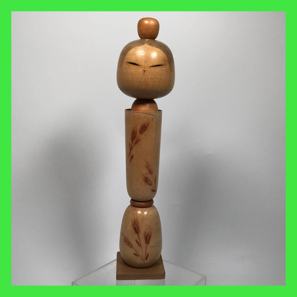 - AZ0041☆ こけし キツネ目で胴体に稲穂のような模様 湯谷温泉 アンティーク 日本伝統 工芸品 民芸品 骨董品 日本人形