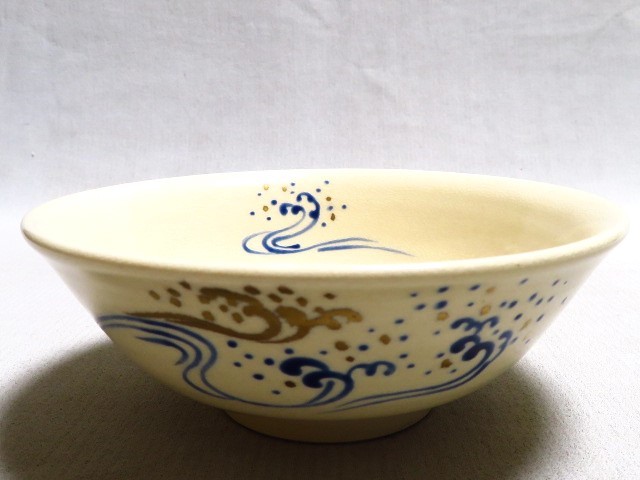 - 茶碗 波図 在銘 金彩色絵 茶器 茶道具