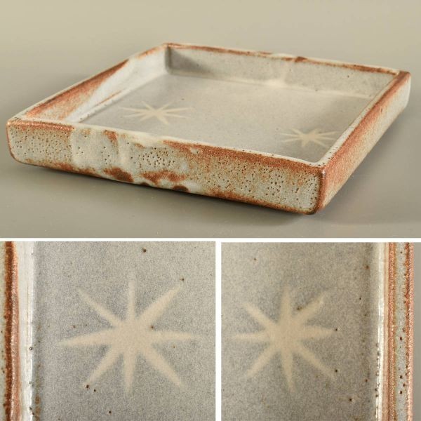 - 北大路魯山人 鼠志野 角形 沙羅 角皿 本物返品OK 173