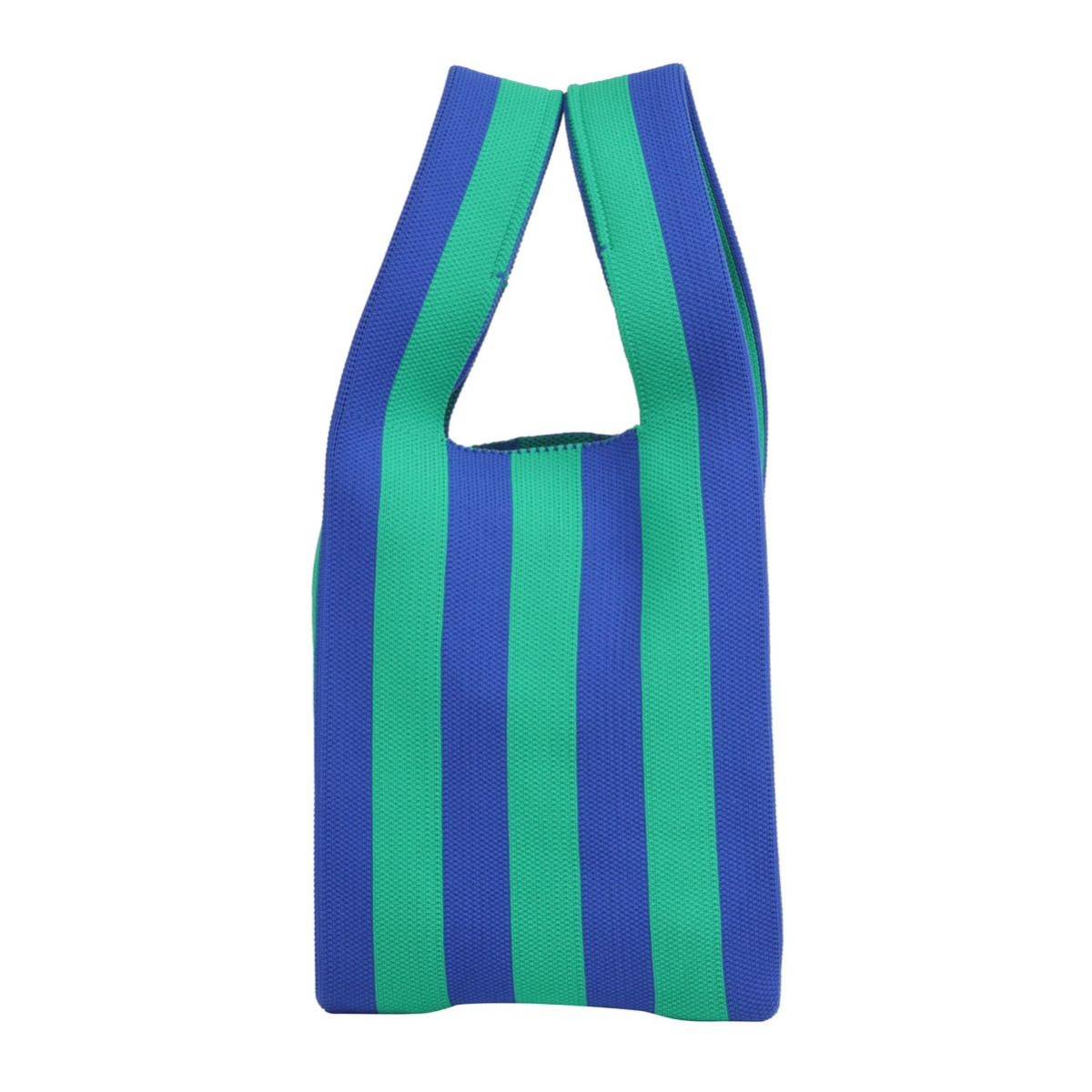 - ニットバッグ トートバッグ ブルー×グリーン トート ストライプ サブバッグ エコバッグ トートバッグ 折りたたみ ニットトート