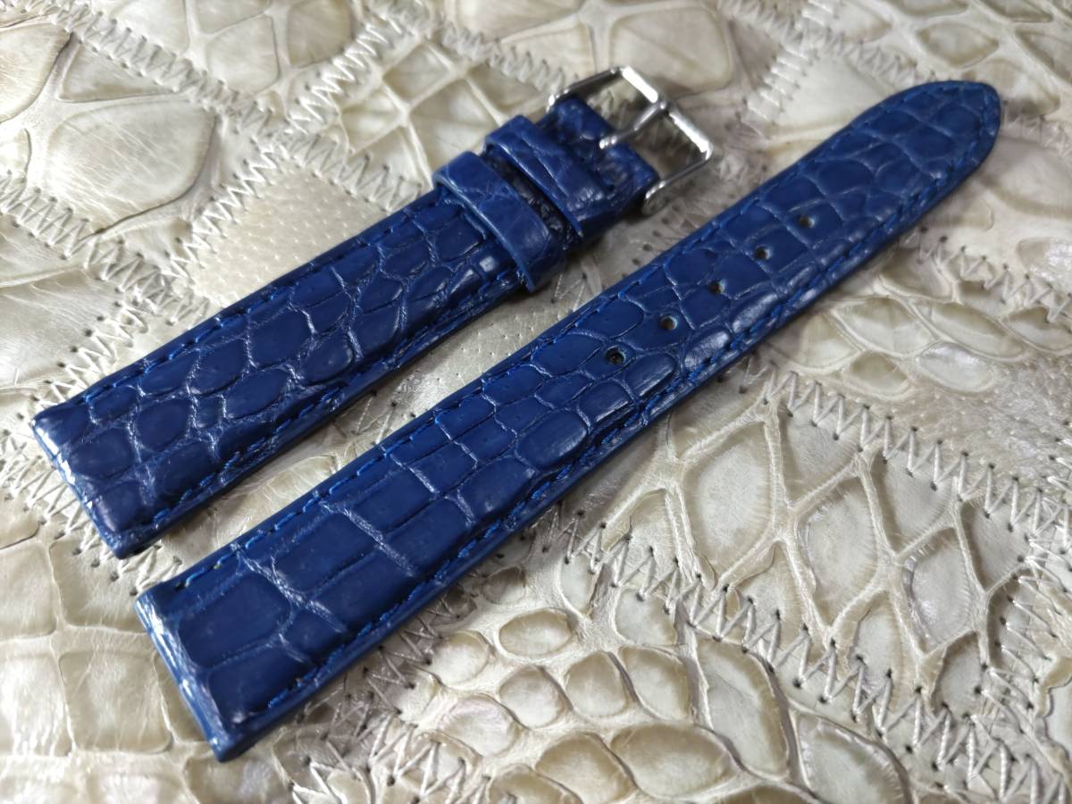 - 送料無料 本物クロコダイル 18.5mm ブルー 上質ワニ革 腕時計用ベルト