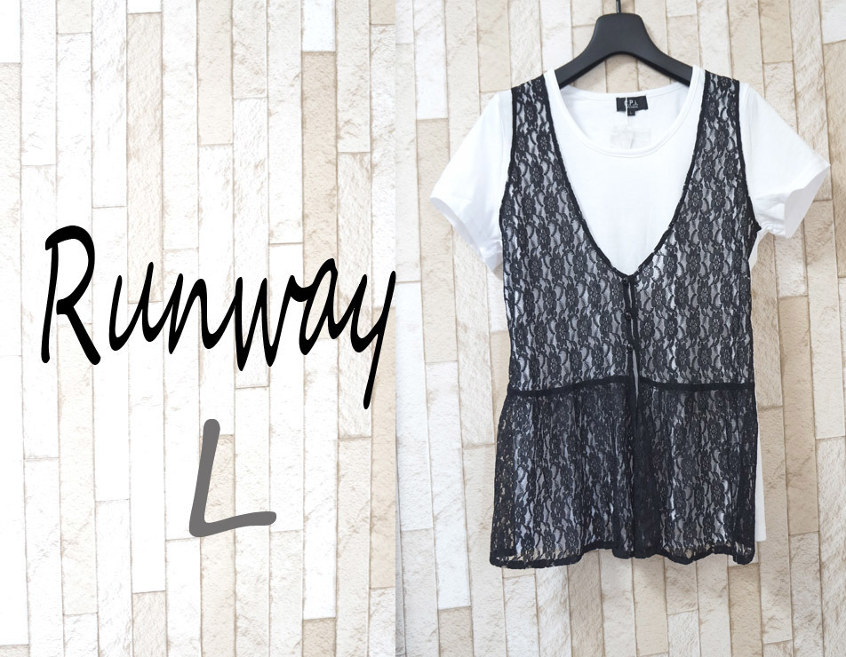 - ●新品/Tシャツ/重ね着風/レース/オフ白系/L/レディース●f5992