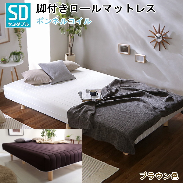> セミダブルベッド 脚付きロールマットレス ボンネルコイルスプリング 通気性と耐久性に優れた頑丈設計 ブラウン色 組立品 ④