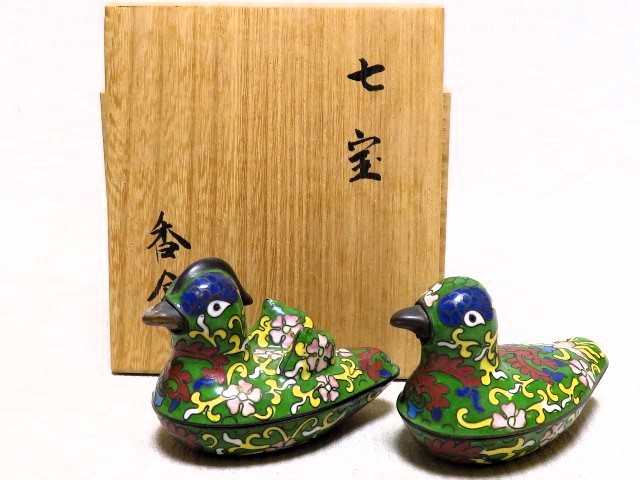 - 七宝香合 鴛鴦香合 香道具 茶道具 用心箱 時代